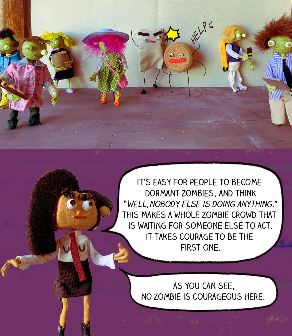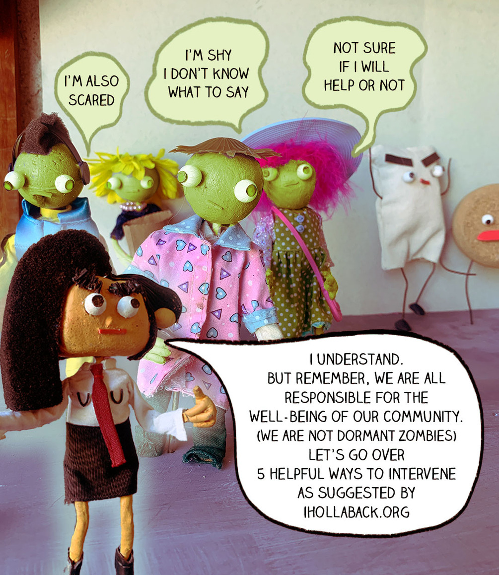 Bystander Intervention comic created and inspired by the workshops provided ihollaback.org